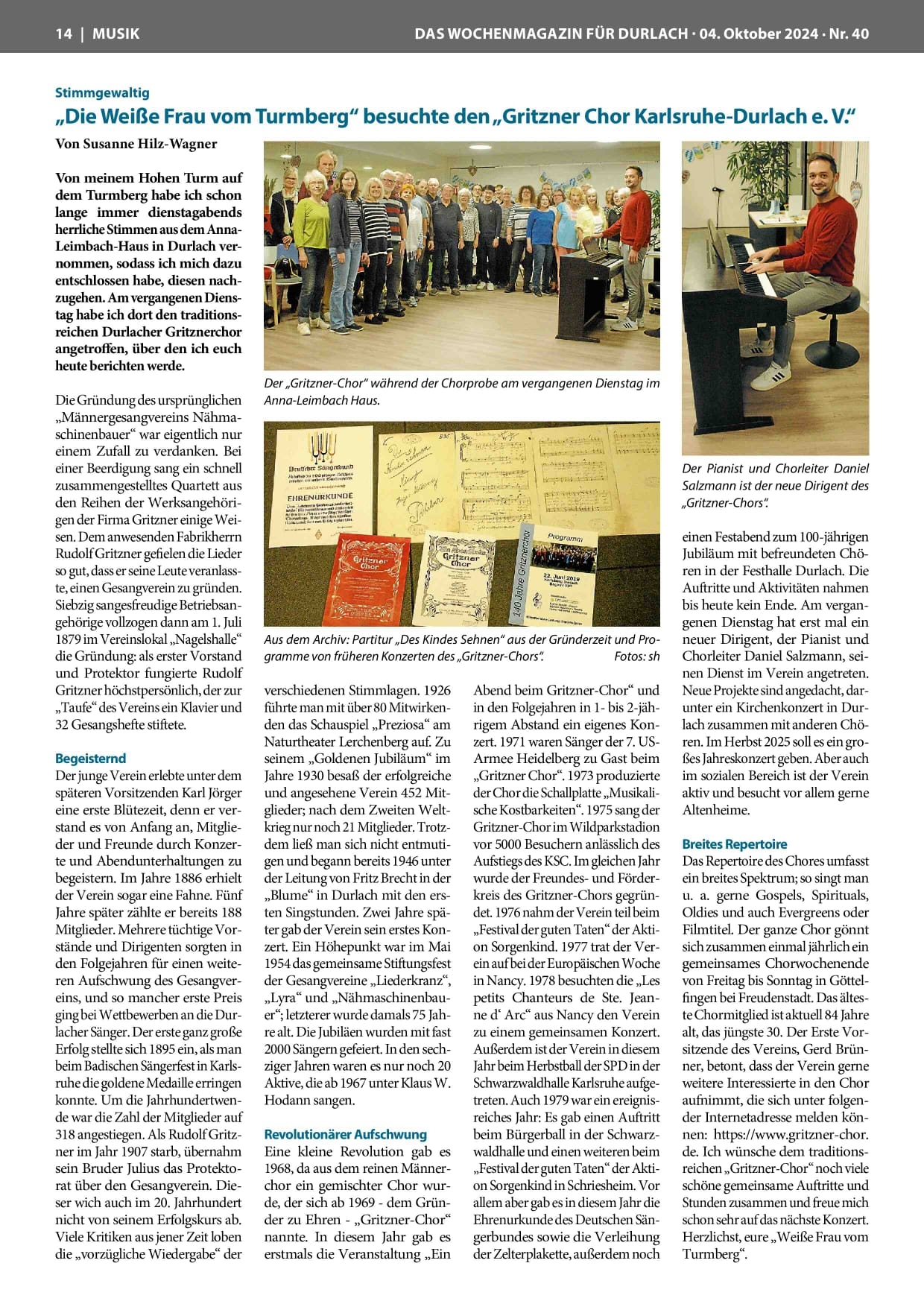 Erschienen im Durlacher Wochenjournal am 04. Oktober 2024. Geschrieben von Susanne Hilz Wagner,